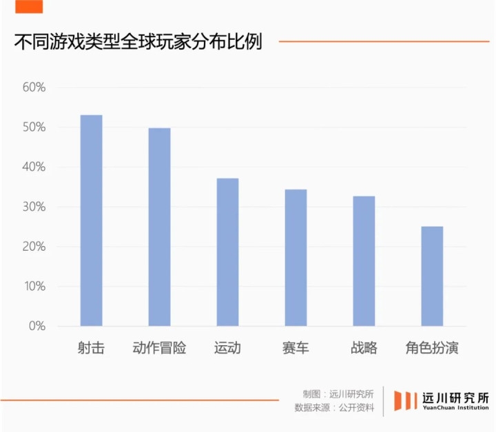 根据2023年的调研数据,射击游戏是玩家比例最高的游戏类型,占比超过53%,位列“车枪球”之首,也超过了动作冒险、角色扮演等类型。因此这里是现代游戏产业竞争最白热化的赛道,“创意+科技+工业化”属性的最佳展示地,挤满了高密度的人才、最前沿的技术、天马行空的想法。