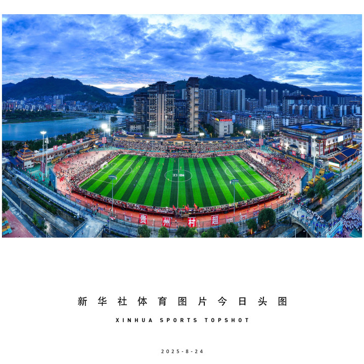 8月23日,2025年首届“村超”全国赛总决赛在贵州榕江县“村超”球场举行。广东肇庆金利诚峻足球队2比0战胜广东和平商会足球队,斩获全国总冠军。赛事期间同时举办丰富多彩的民族歌舞展演、无人机表演、大型烟花秀,吸引数万观众现场观赛。