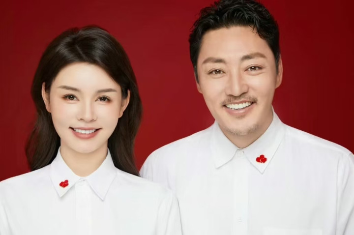 赵达和妻子穿着情侣款白衬衣拍了结婚证件照,领口处的叠加爱心是幸福的体现,即便是如此重要的照片,赵达也没有刮掉胡子,看来他对自己这标志性的胡子很满意。