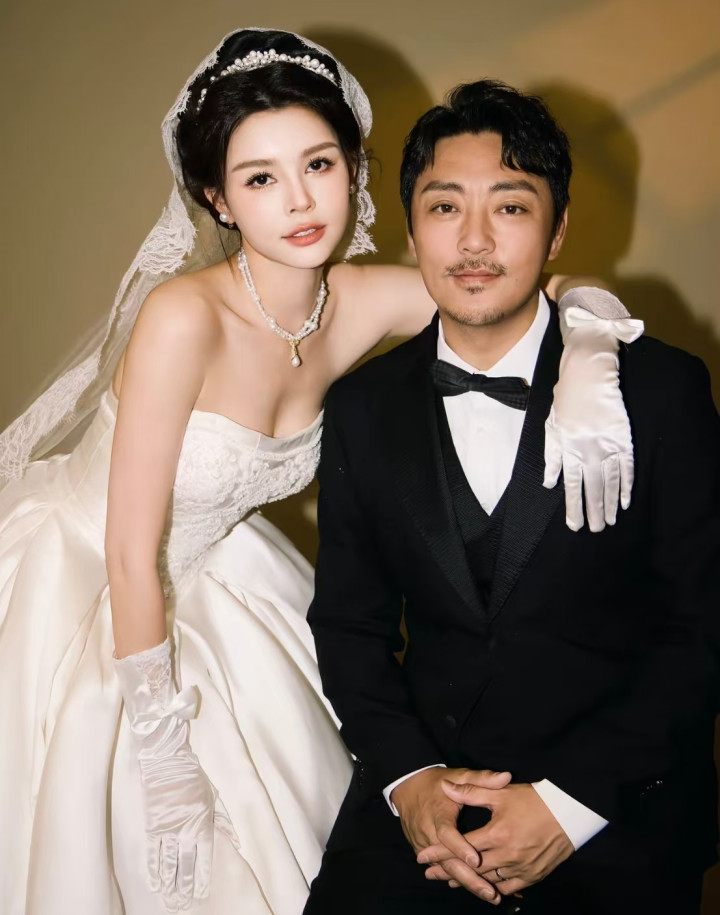 婚纱照里,赵达也是呲牙咧嘴笑,妻子画着精致妆容,漂亮的像洋娃娃,只是这张脸没有辨识度,让人记不住长相,有点科技痕迹。
