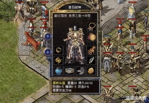 黑铁头盔自带高防御和高魔御属性,和圣战头盔是持平的,但凡加几点属性就能成为复古版本的巅峰头盔系列。在官服中曾经有攻6黑铁头盔火爆全服,如上图所示,当年落日战神头上的这顶攻6黑铁头盔属性吓人,即便是星王战盔也自愧不如,果然GM刷的装备就是牛啊。