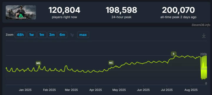 4月22日《三角洲行动》手游版海外上线当日,游戏就一举登上了169个国家和地区的iOS免费榜榜首;在PC平台,《三角洲行动》更是成为近年为数不多的,能在Steam上保持在线人数持续上涨的国产游戏。
