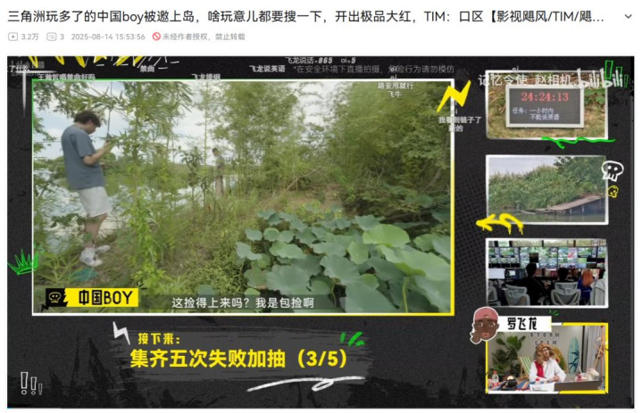 柯洁(围棋选手)曾在一次日常直播里提到,人生中第一次在电竞酒店过生日,是和朋友一起通宵三角洲跑刀;在Tim(影视飓风)最近的荒岛节目里,头部达人中国Boy也在参与节目时自嘲,频频露出“三角洲后遗症”的现象--看到啥都想搜一下。