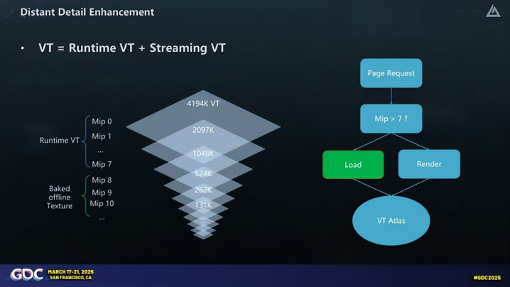 后来他们又觉得,这移动端的远景是不是还差点意思?为此,《三角洲行动》特地引入了Streaming Virtual Textures解决方案,让游戏手机端的远景地形细节完全保留,不再出现沟壑与侵蚀细节被平滑掉的现象。