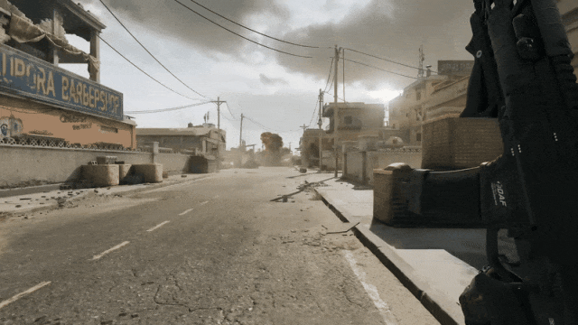 首先从游戏的视听表现来看,性能宽裕的主机端为玩家保留了绝大部分的画面细节——无论是载具行驶中不断扬起的尘土,坦克开炮时肉眼可见的冲击波,还是远方炮击命中后的滚滚浓烟,几乎是1:1还原了真实战场应有的战争氛围,并给玩家带来身临其境的现代战争体验。