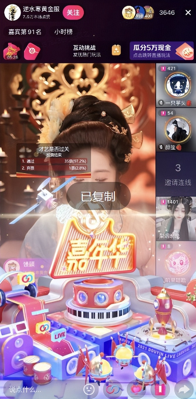 20日晚,馒頭也观看了大宋佳人活动直播,并且一言不发的给官方刷了嘉年华捧场。而很多西新的玩家发现,馒頭本人的抖音ID跟游戏中不仅相同,等级还吓死人的高,足足有71级。
