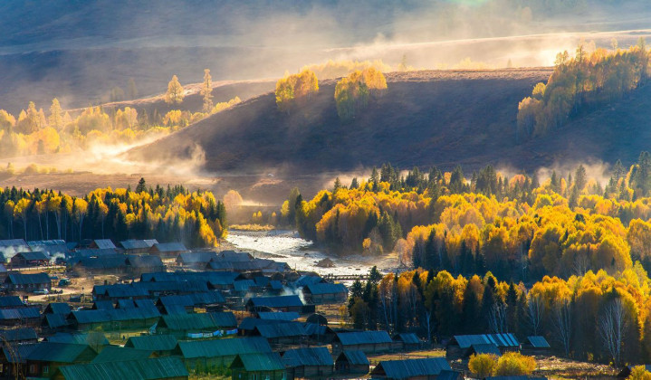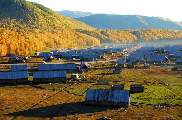 白哈巴村则更宁静原始,作为中国西北第一村,这里松林、金黄色的落叶松、白桦、原木小屋、栅栏、悠闲地牛羊完美融合,构成一幅宁静悠远、色彩浓郁的秋日油画