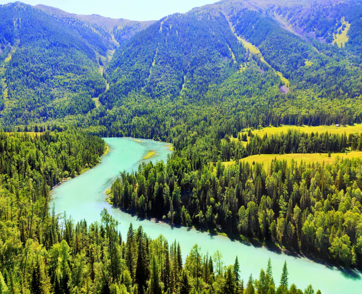 喀纳斯被中国国家地理评为“中国十大秋色”之首,从湖泊到山野层林尽染,五彩斑斓又极致丰富。喀纳斯湖在秋日下犹如一块璀璨的碧玉,湖水与四周的山峦交相辉映,金黄与绯红的交织的林木,宛如大自然泼墨而成的画卷。登上观鱼台,湖光山色尽收眼底,仿佛烦恼也能随风而逝。月亮湾是喀纳斯的标志性景点,水面呈湖蓝蓝色,四周植被在秋季呈现多彩的颜色,卧龙湾和神仙湾也是标志性景点之一。
