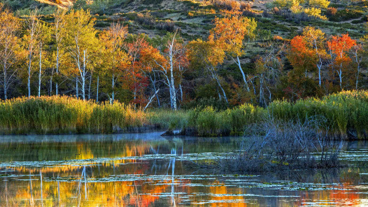 阿勒泰的秋天,仿佛是上帝打翻的调色板,用任何语言来描绘都显得苍白无力