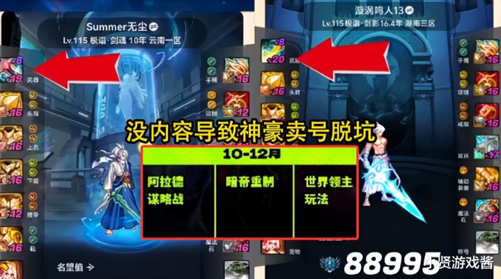 游戏没内容,不仅导致头部主播不愿播,还引发了一波脱坑潮。比如红19光剑剑魂、红20太刀剑影的号主,都选择脱坑卖号。