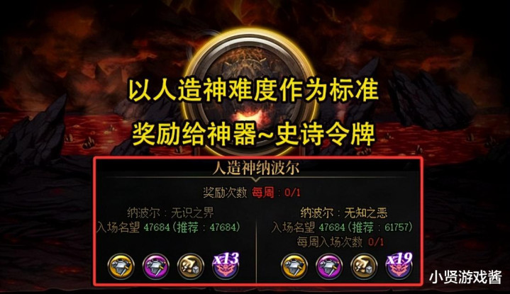比如难度和门槛可以按 “人造神” 的标准来设计,奖励里加入史诗武器自选礼盒、神器~史诗级别的令牌。