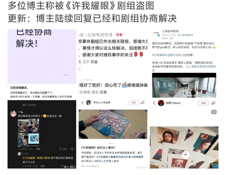 3、影视剧《许我耀眼》被指盗图,剧组,博主纷纷称回应后续已经妥善解决