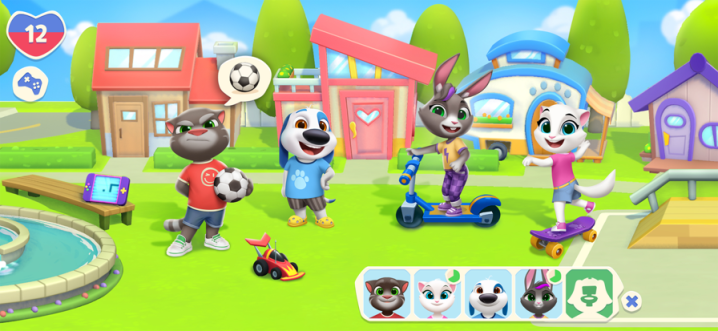 从玩法来看,《My Talking Tom Friends 2》继承了“汤姆猫”系列的养成体验,并且创意融入了社区探索等具有更强开放性的玩法,以及虚拟现实装扮、通过游戏赚取金币和奖励、彩蛋玩具等趣味性要素,这些要素的融入,进一步拓宽了《My Talking Tom Friends 2》的用户层。