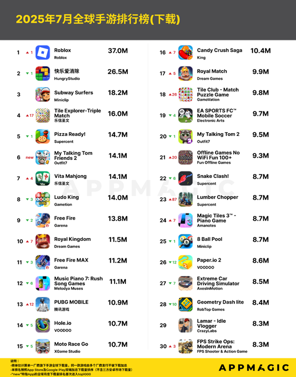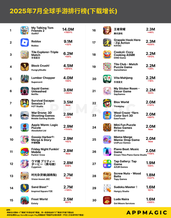 在8月接近尾声的阶段,各大数据平台的7月榜单也已经陆续更新完毕。其中,根据AppMagic发布的几项榜单,我们注意到有一些现象非常值得关注。