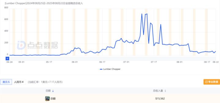 根据点点数据,《Lumber Chopper》自去年11月上线至今的内购总收入超过1.5万美元。总的来说,《Lumber Chopper》证明了将核心玩法体验做好,一样可以拉长超休闲游戏的生命周期。