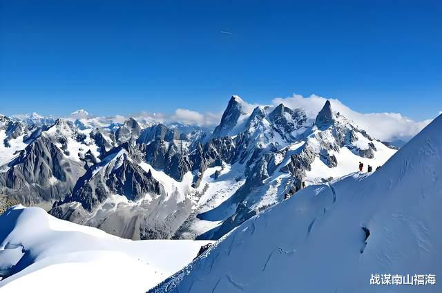 法国和意大利共享的勃朗峰(4805.59 米)堪称 “跨国界峰会” 的典范。这座阿尔卑斯山脉的主峰,峰顶恰在两国边界上,法国人称它 “Mont Blanc”,意大利人叫它 “Monte Bianco”。1786 年首次登顶后,它就成了欧洲贵族的 “户外俱乐部”,如今每年有上万登山者来挑战 “白色巨人” 的冰峰。
