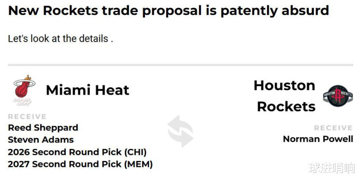 病急乱投医!打包谢泼德与亚当斯换鲍威尔?休媒《spacecityscoop》怒批美媒支招火箭队解决范乔丹受伤的潜在4换1交易方案,直言这是一笔短视又荒谬的选择。